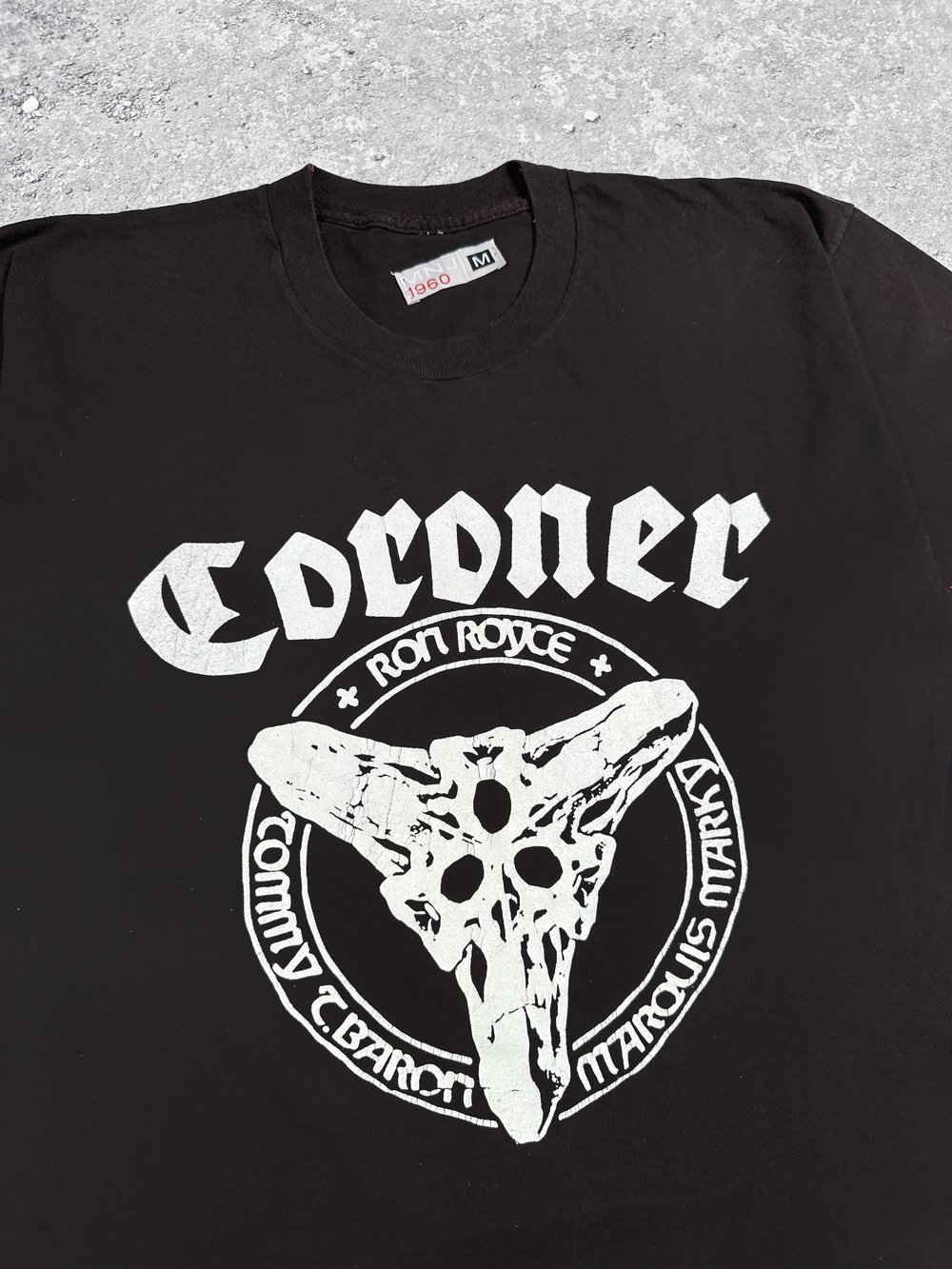 In good condition, given its age. There are no holes or stains on the shirt. The fabric feels heavyweight and is single stitched. Print shows minor cracking. Tag is from MNJ 1960 and says size M.