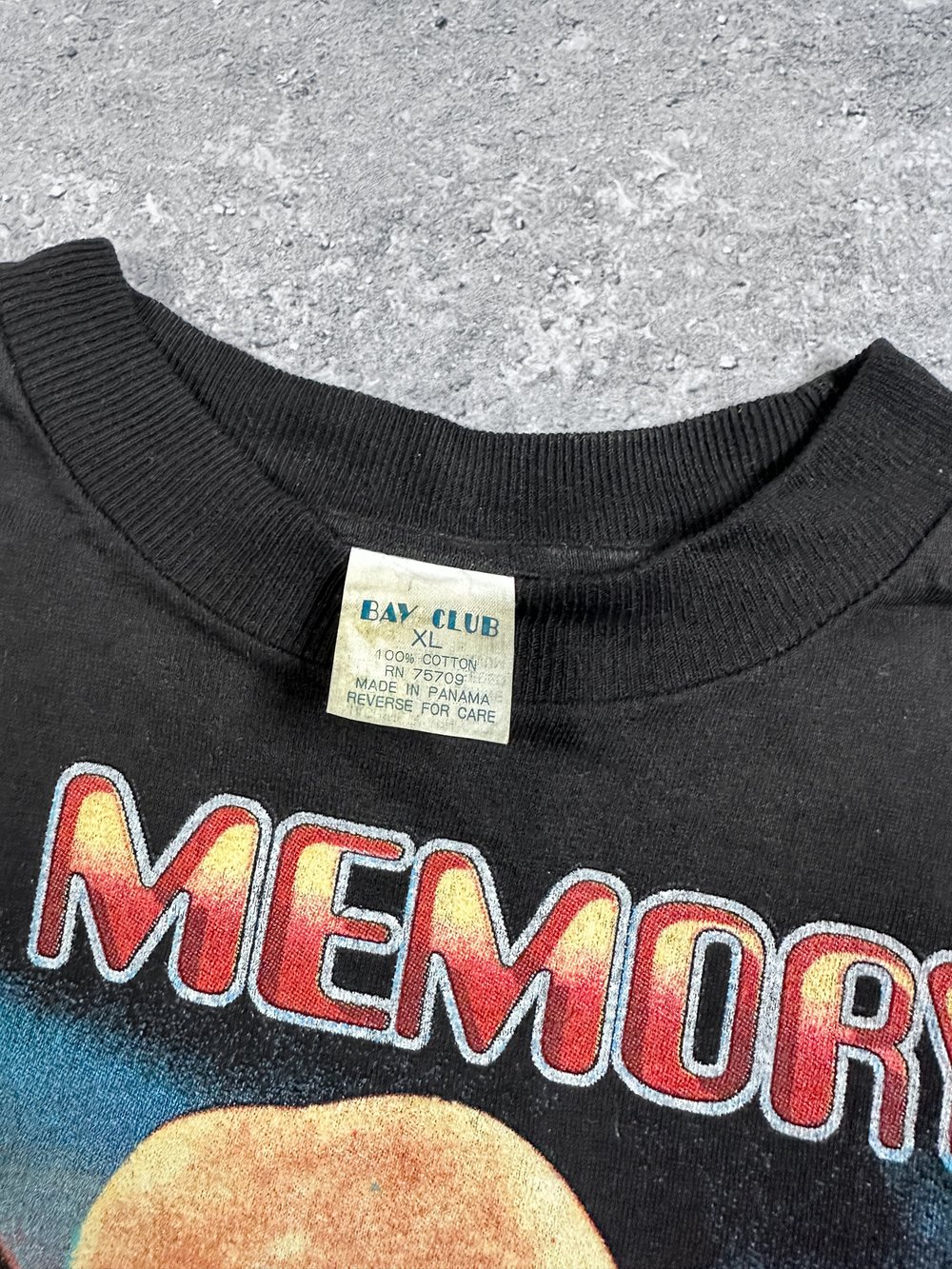 This is a new t-shirt. There are no holes or stains on the shirt. The fabric feels heavyweight and is single stitched. Print shows minor cracking. Tag is from Bay Club and says size XL. Very hard to come by.